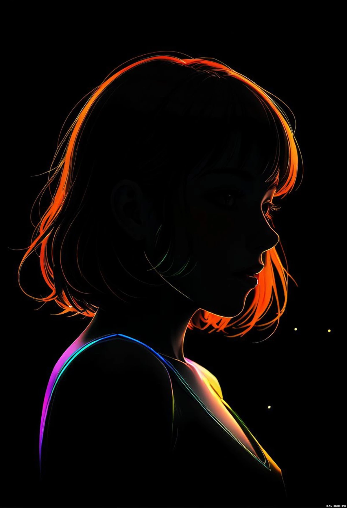 a warm glow on one side of her face, while the other side is more shadowy, creating a silhouette-like effect. She wears what appears to be