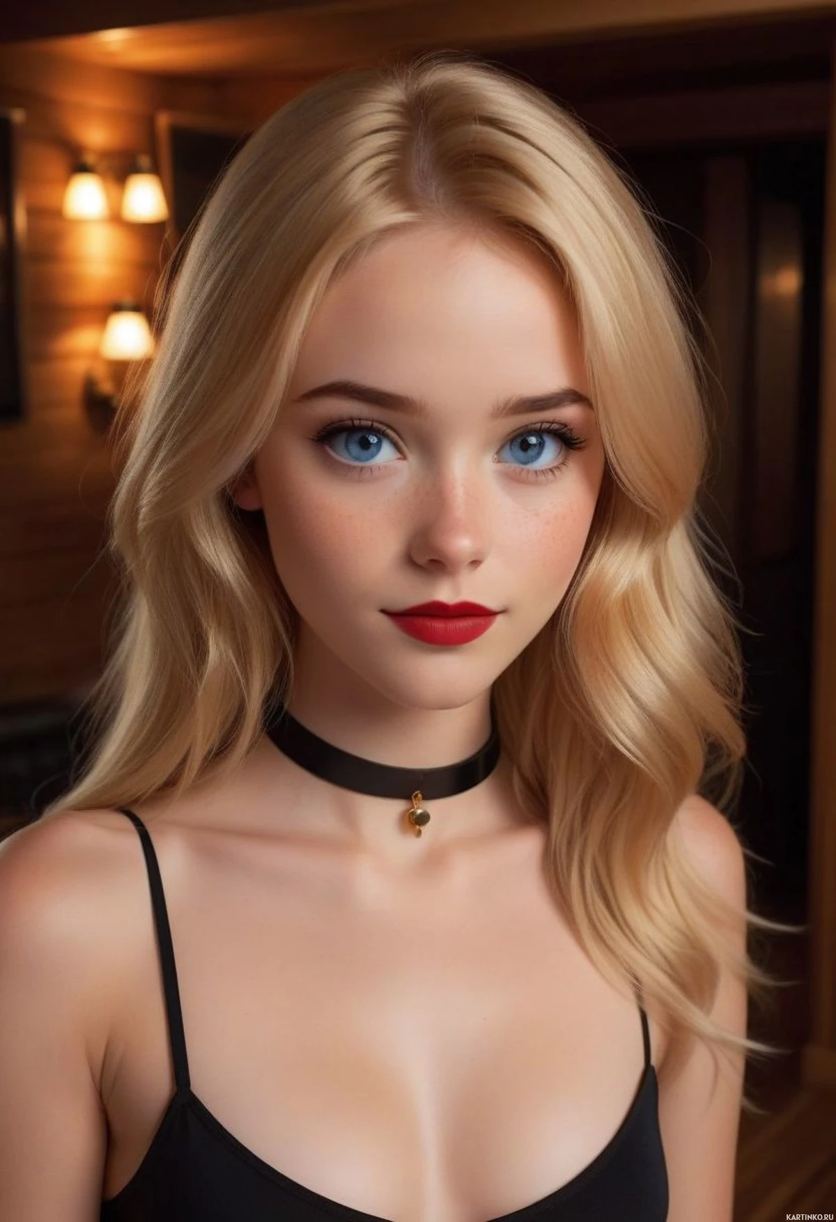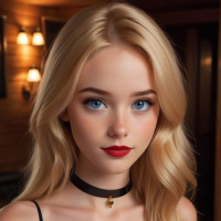 warm lighting that appears to be artificial, casting gentle shadows on her face. The style of the artwork suggests it may be from