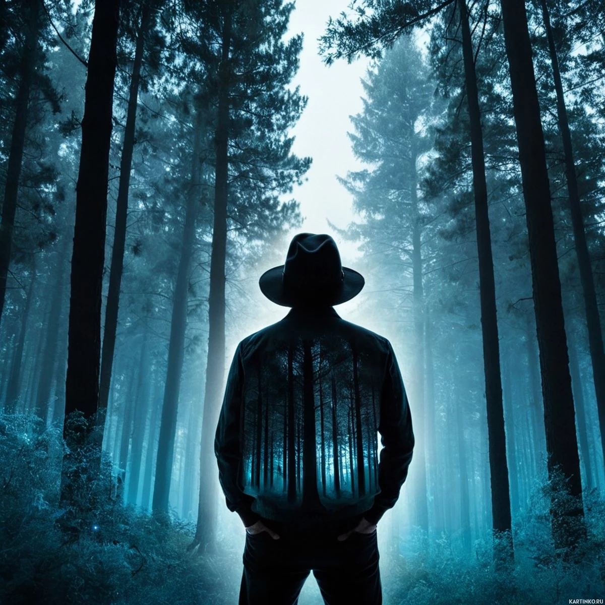 лес | Фотки и рисунки с лесом | Forest | Мужчина в шляпе в ночном лесу