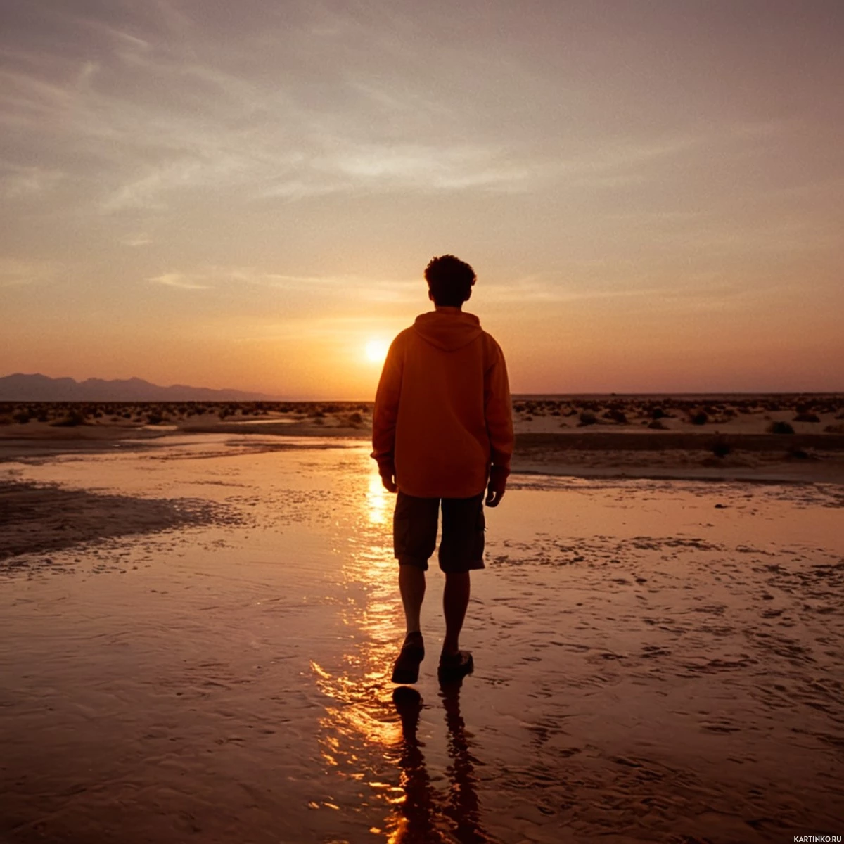 Человек на мокром песке на закате Больше картинок по схожим темам