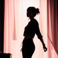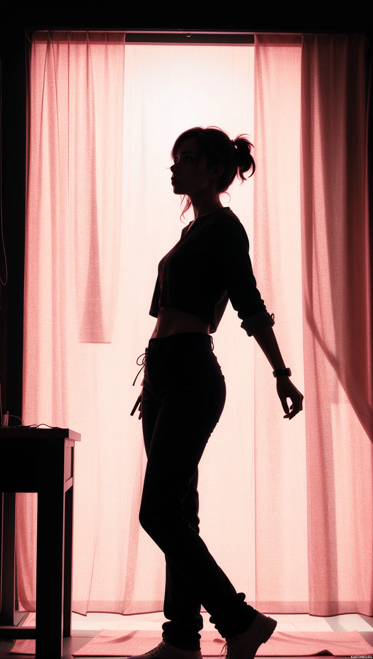 Розовый занавес и силуэт молодой девушки Больше картинок по схожим темам