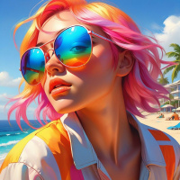пляж | Скачать аватары с пляжем | Beach | Стильный пляжный образ с розовыми волосами и солнечными очками