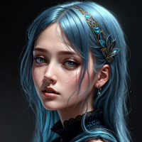 intricate designs and a shoulder strap adorned with what looks like feathers or a similar ornamental detail. Her expression is neutral, and she gazes slightly off to the side rather than directly at the viewer. The overall tone of the image is soft and artistic, with attention given to the character's detailed features and color palette.