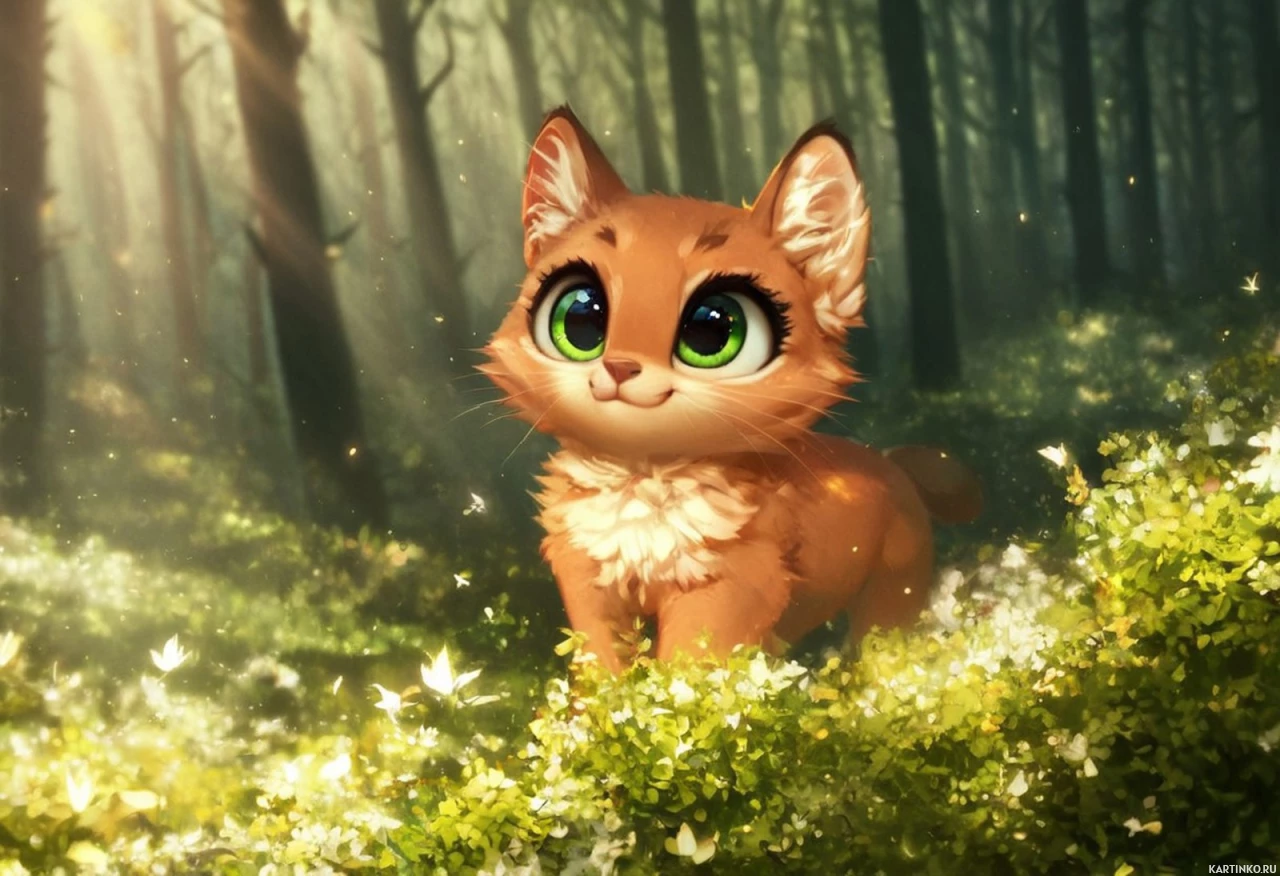 Дружелюбный котенок в волшебном лесу Больше картинок по схожим темам