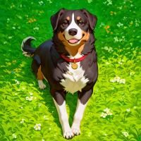 животные | Фотки и рисунки с животным | Animals | Стилизованное изображение собаки, радующейся зеленому полю
