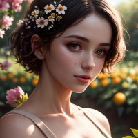 wavy hair that frames her face elegantly. Her expression is soft and she seems to be posing for the portrait. Surrounding her head are delicate