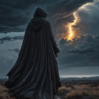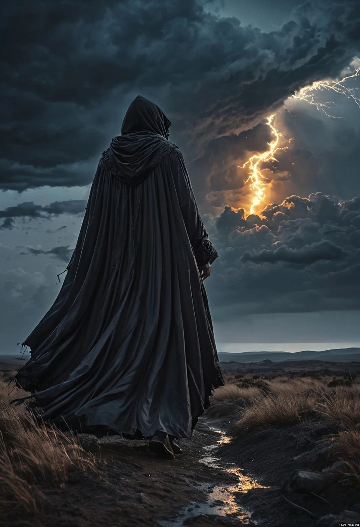 плащи | Фотки и рисунки с плащём | Cloaks | Загадочное существо, идущее навстречу молнии и грозовым облакам