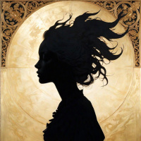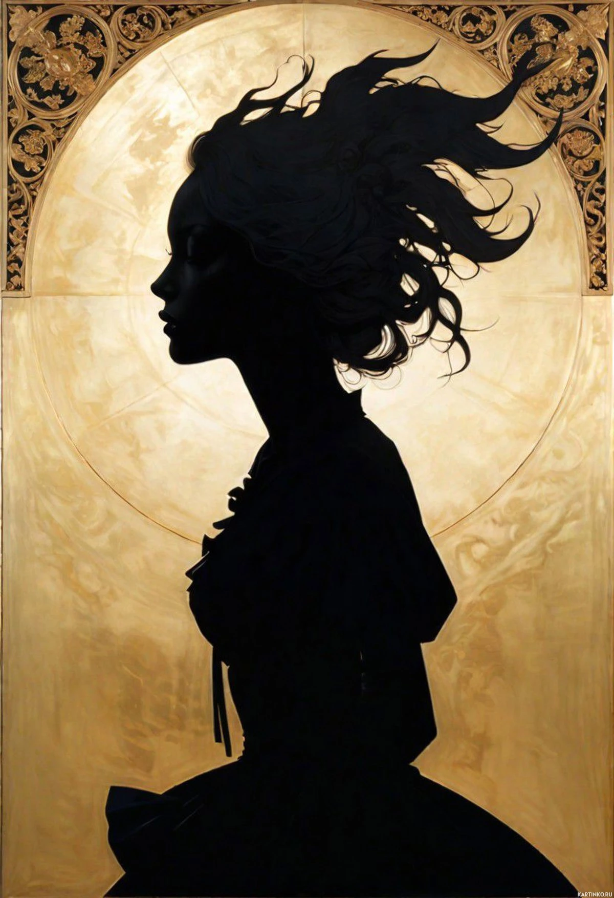 Изображение в золотистых тонах с силуэтом девушки Больше картинок по схожим темам