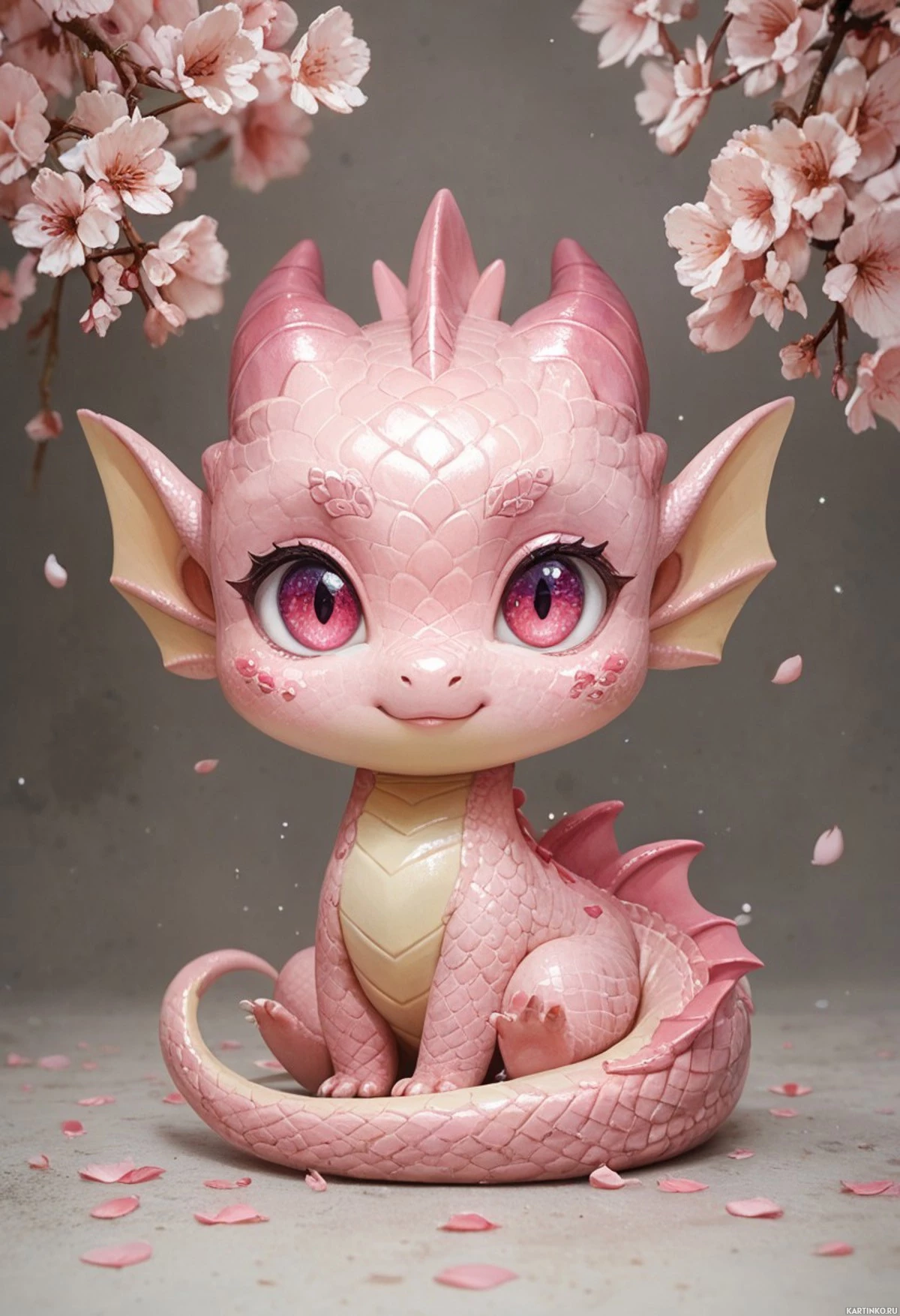 фэнтези | Красивые авы с фэнтези | Fantasy | Розовая игрушечная дракон на фоне цветущей вишни