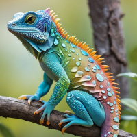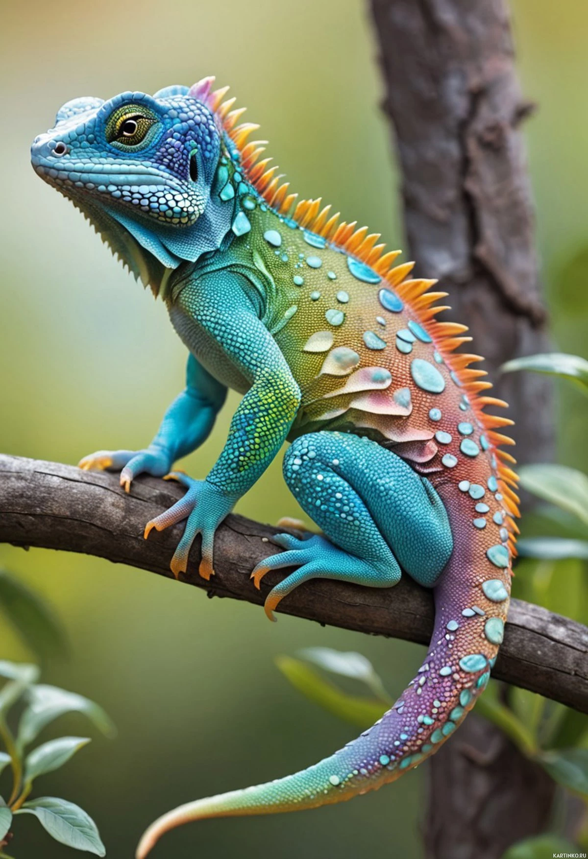 ящерицы | Красивые авы с ящерицей | Lizards | Ящерица-игуана синего, зеленого, желтого и красного цветов на ветке дерева