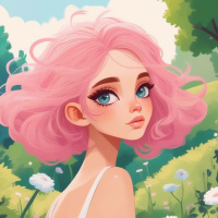 Милая картинка персонажа - девочка с розовыми волосами в поле Больше картинок по схожим темам