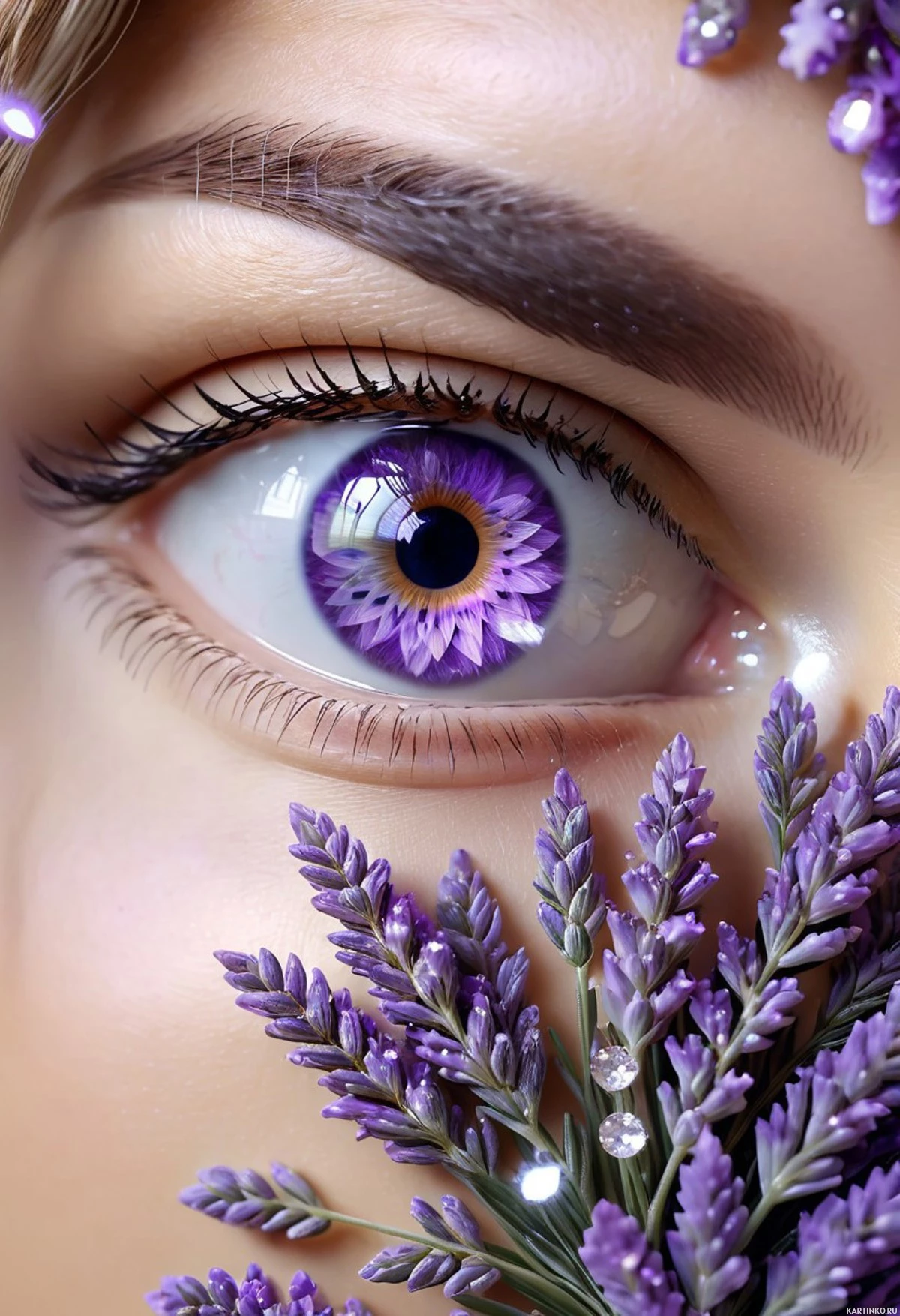 глаза | Скачать аватары с глазом | Eyes | Лепестки фиолетовых цветов на глазу девушки