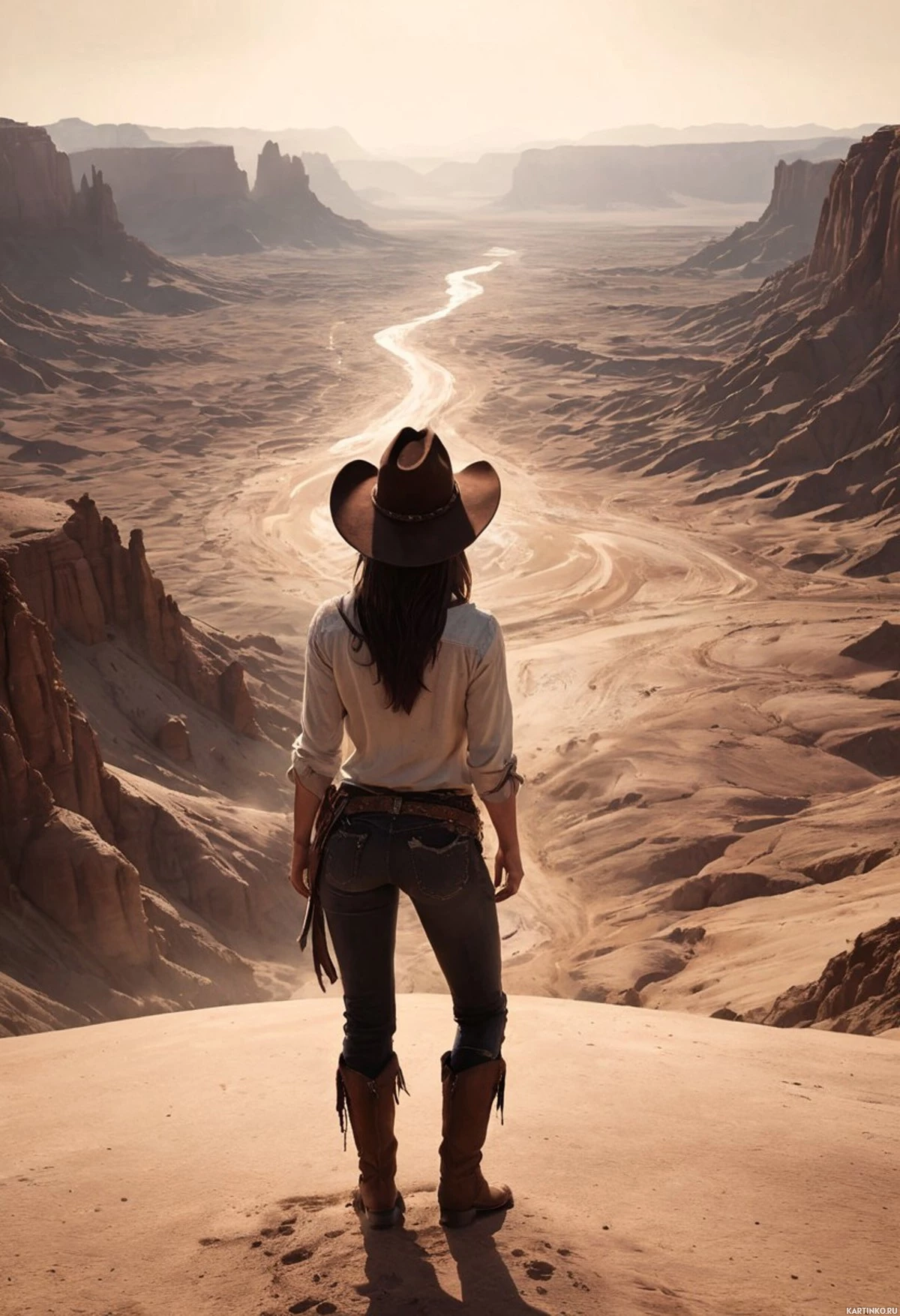 шляпы | Красивые авы с шляпой | Hats | Женщина в ковбойской шляпе перед бездной