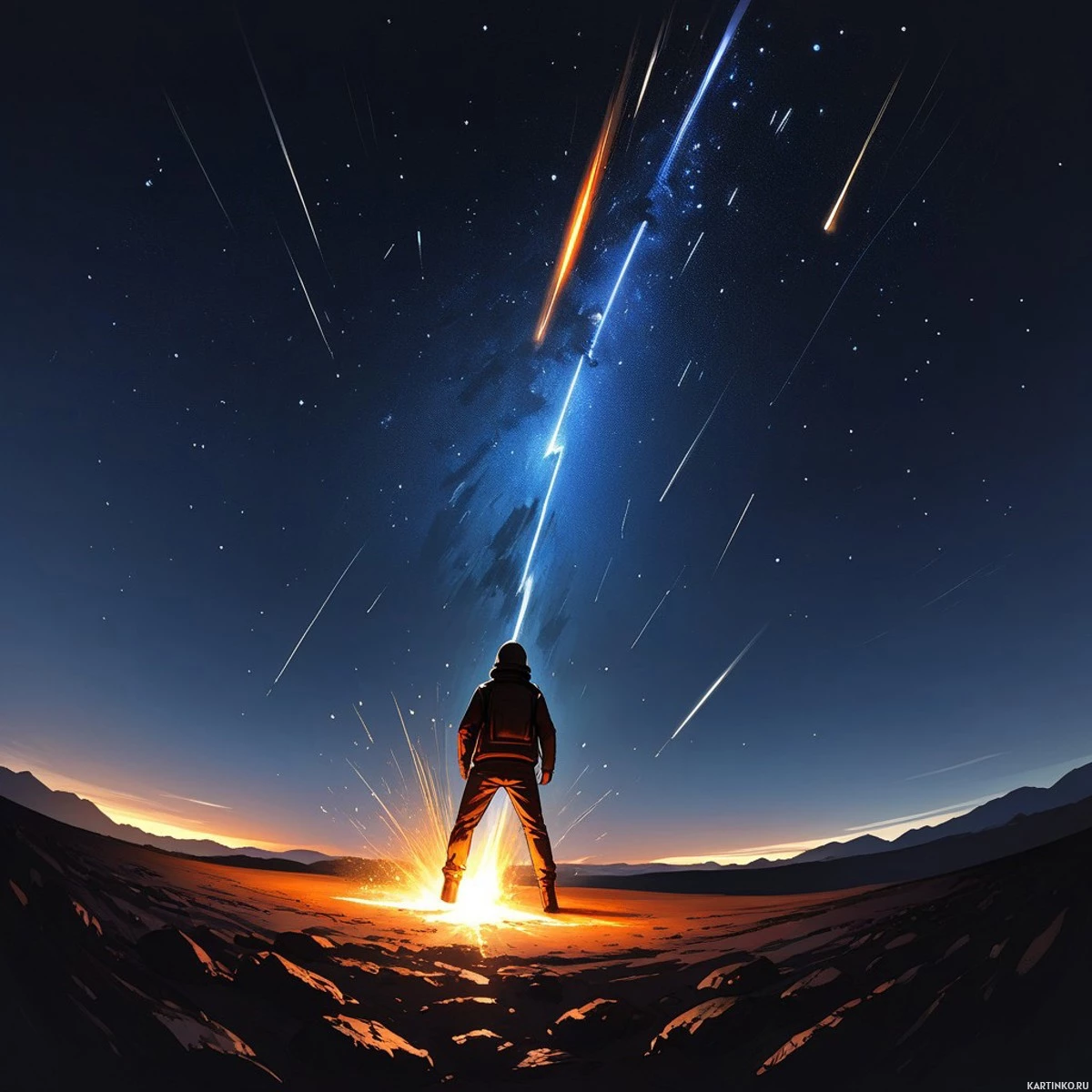 мужчины | Фотки и рисунки с мужчиной | Mens | Метеорный дождь над пустынным ландшафтом