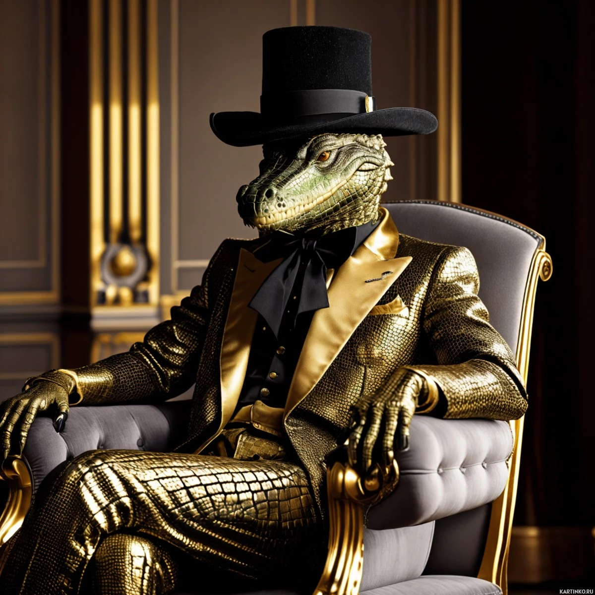 Крокодил в золотом цилиндре и смокинге Больше картинок по схожим темам