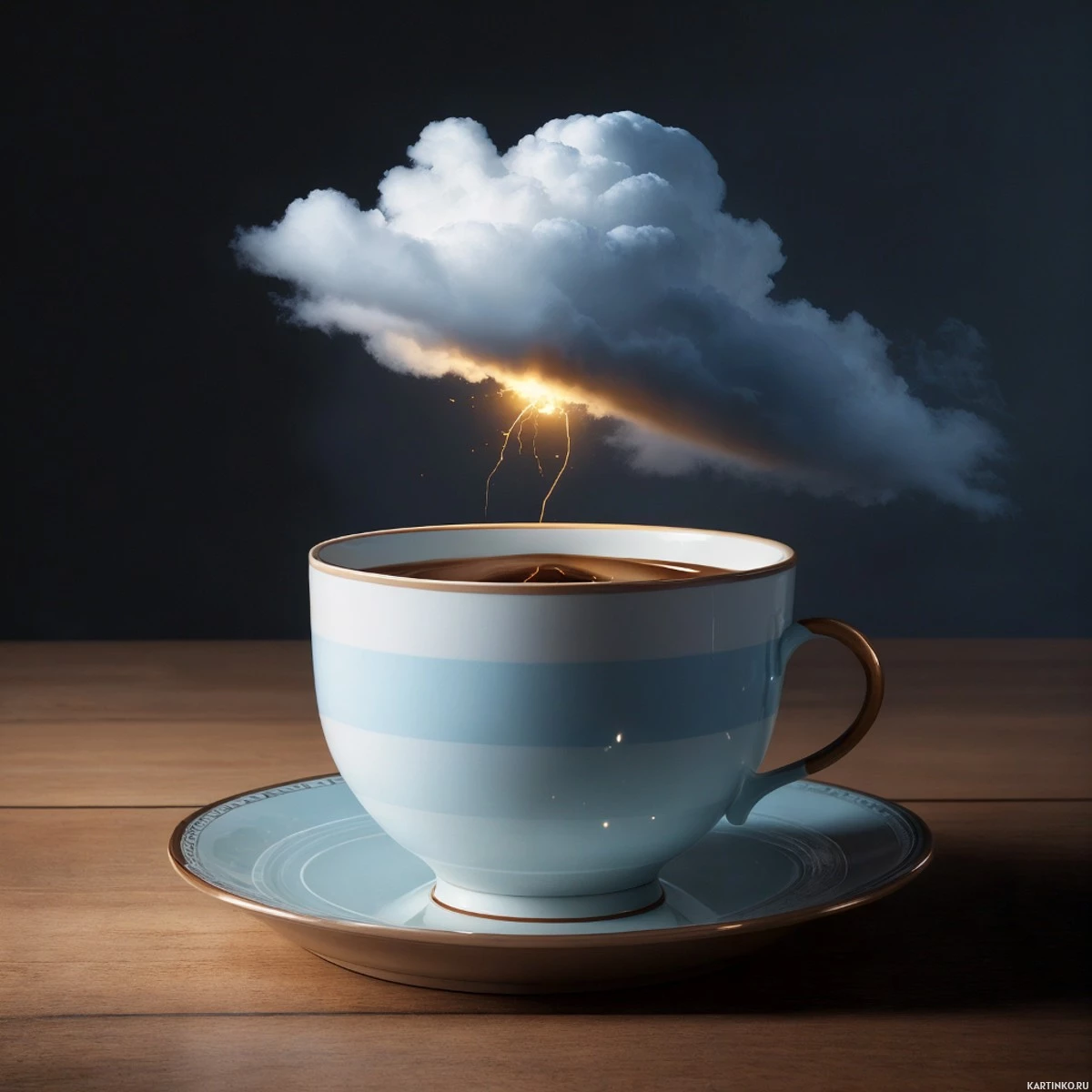 Молния и облака на фоне чашки кофе Больше картинок по схожим темам