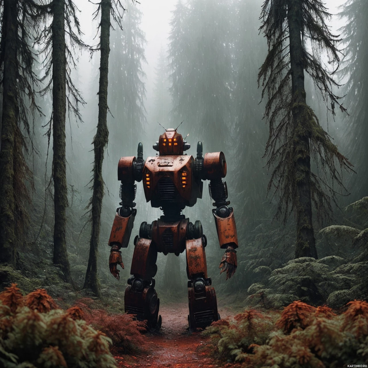 Робот в стиле научной фантастики в таинственном лесу Картинки с такими же тегами