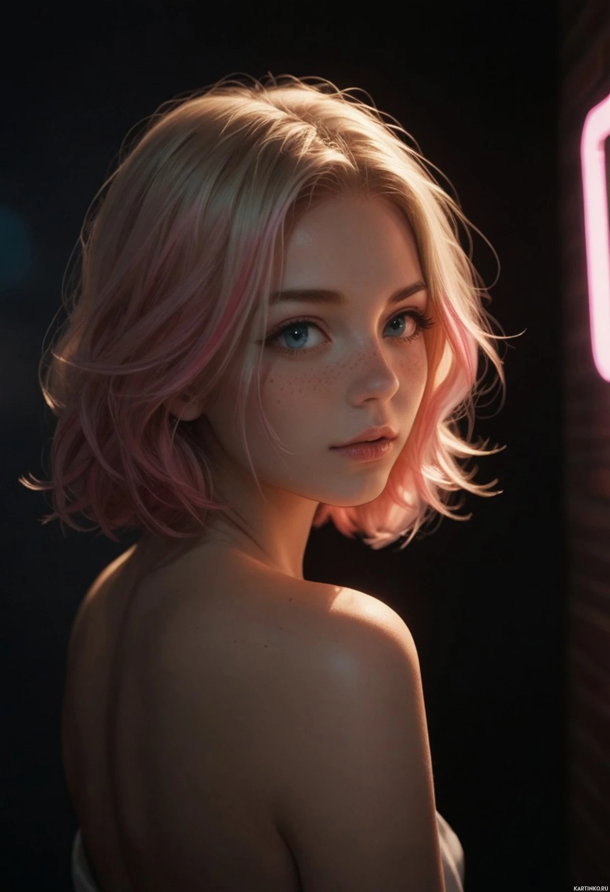розовые волосы | Pink hair | Женщина в открытом топе, поворачивающаяся через плечо