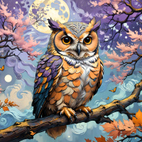 Лунный сад с совой, отдыхающей на ветвях дерева Больше картинок по схожим темам