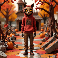Осенняя сцена с кошачьей маской Картинки с такими же тегами