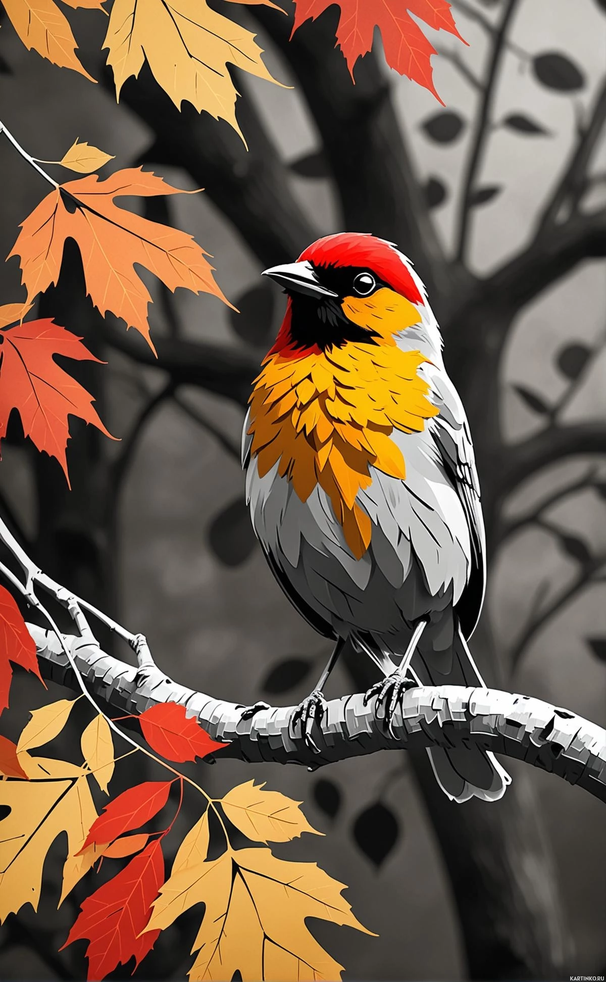 Птица в жёлтых и красных тонах, встречая сезон Картинки с такими же тегами