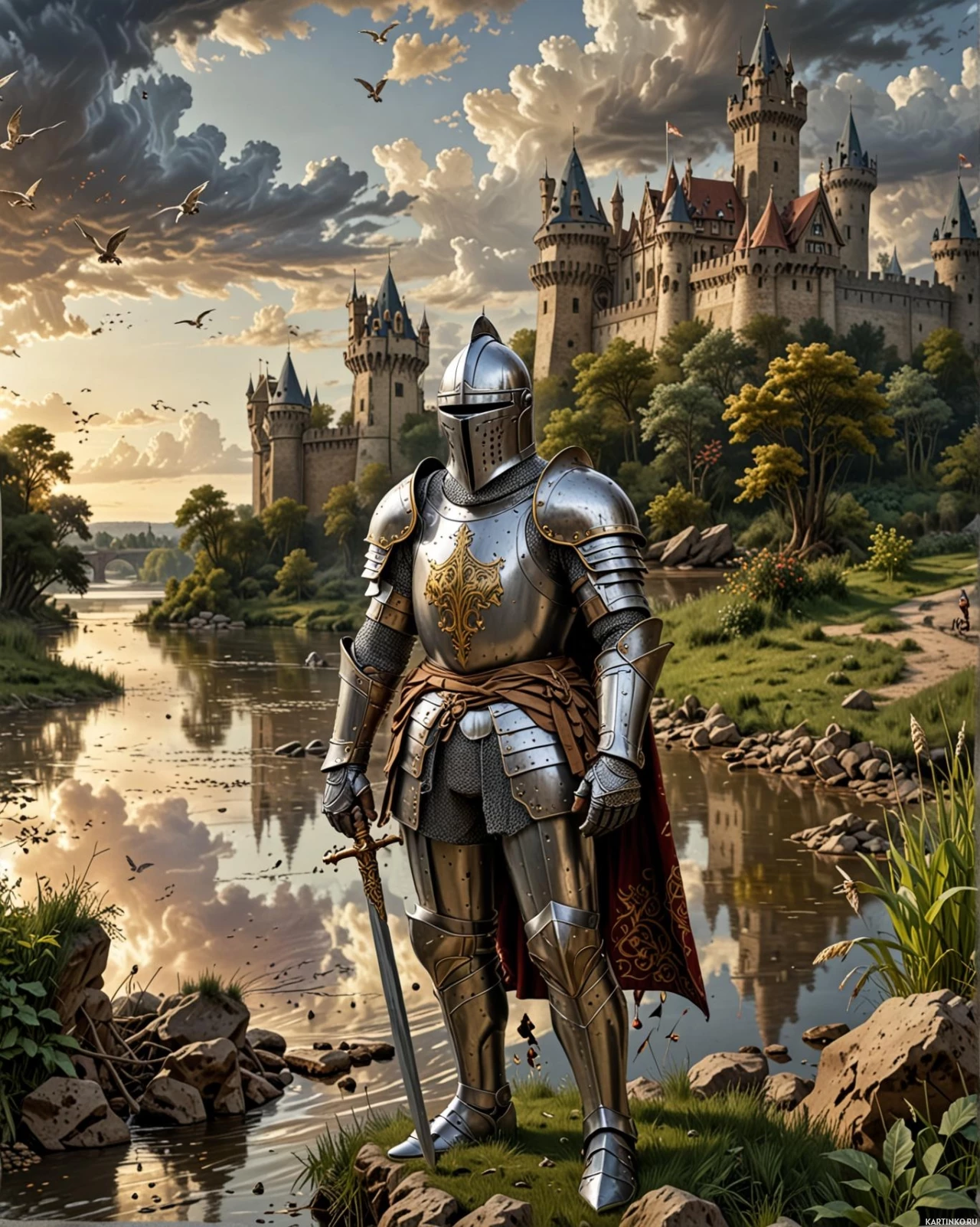 Рыцарь в средние века стоит у озера Картинки с такими же тегами