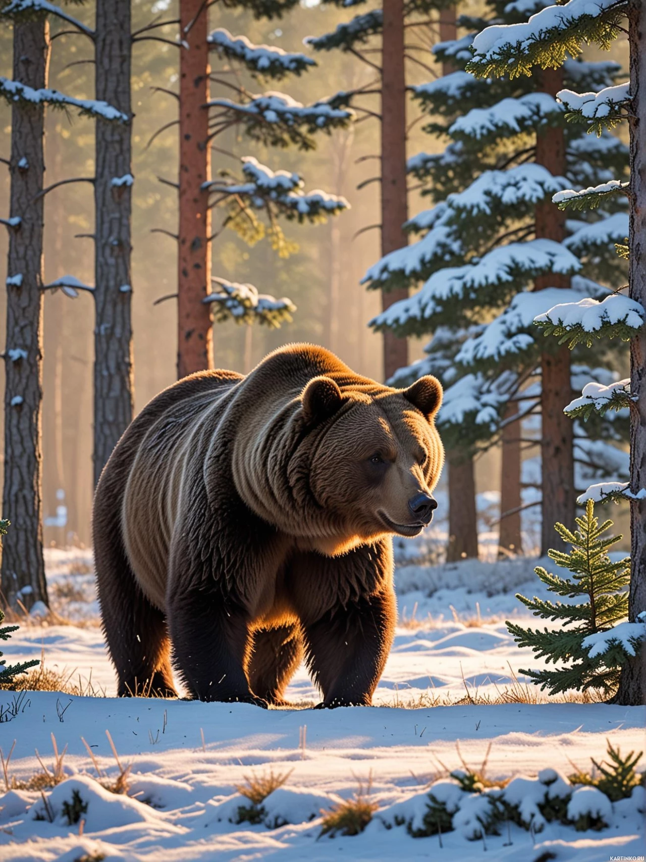 снег | Красивые авы с снегом | Snow | Величественный бурый медведь в заснеженном лесу