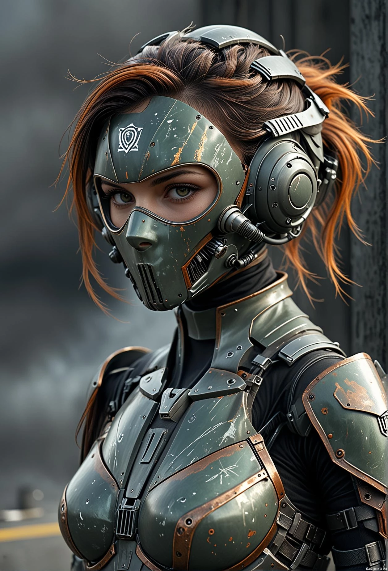 futuristic armor that is heavily detailed, suggesting advanced technology or combat readiness. The armor includes elements that could be associated with