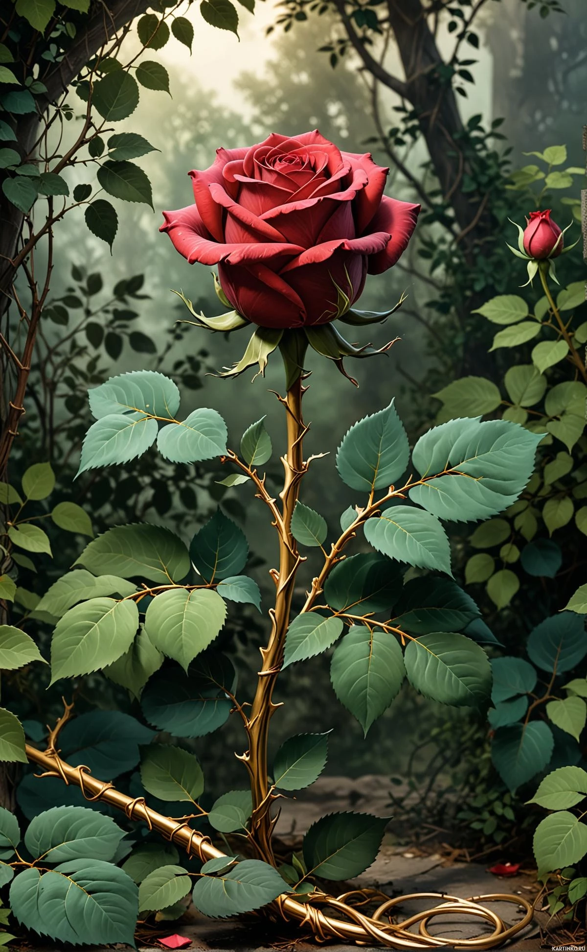 Роза в естественной среде, с золотистыми акцентами Картинки с такими же тегами