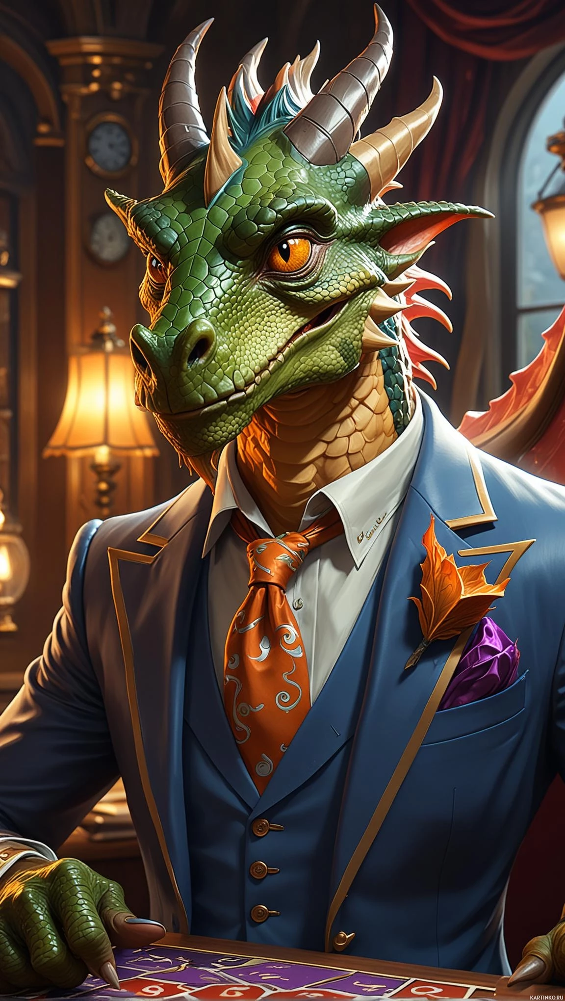 антропоморфные существа | Скачать аватары с антропоморфным существом | Anthropomorphic creatures | Дракон в человеческом облике за игорным столом