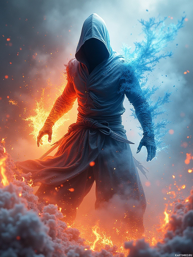 огонь | Скачать аватары с огнём | Fire | Таинственный персонаж в капюшоне, охваченный стихийным гневом