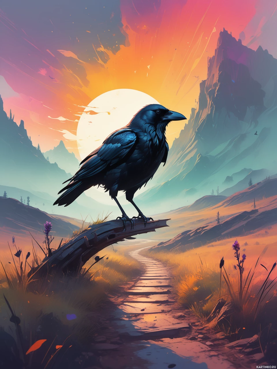 Спокойный закат с вороном на краю Больше картинок по схожим темам