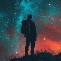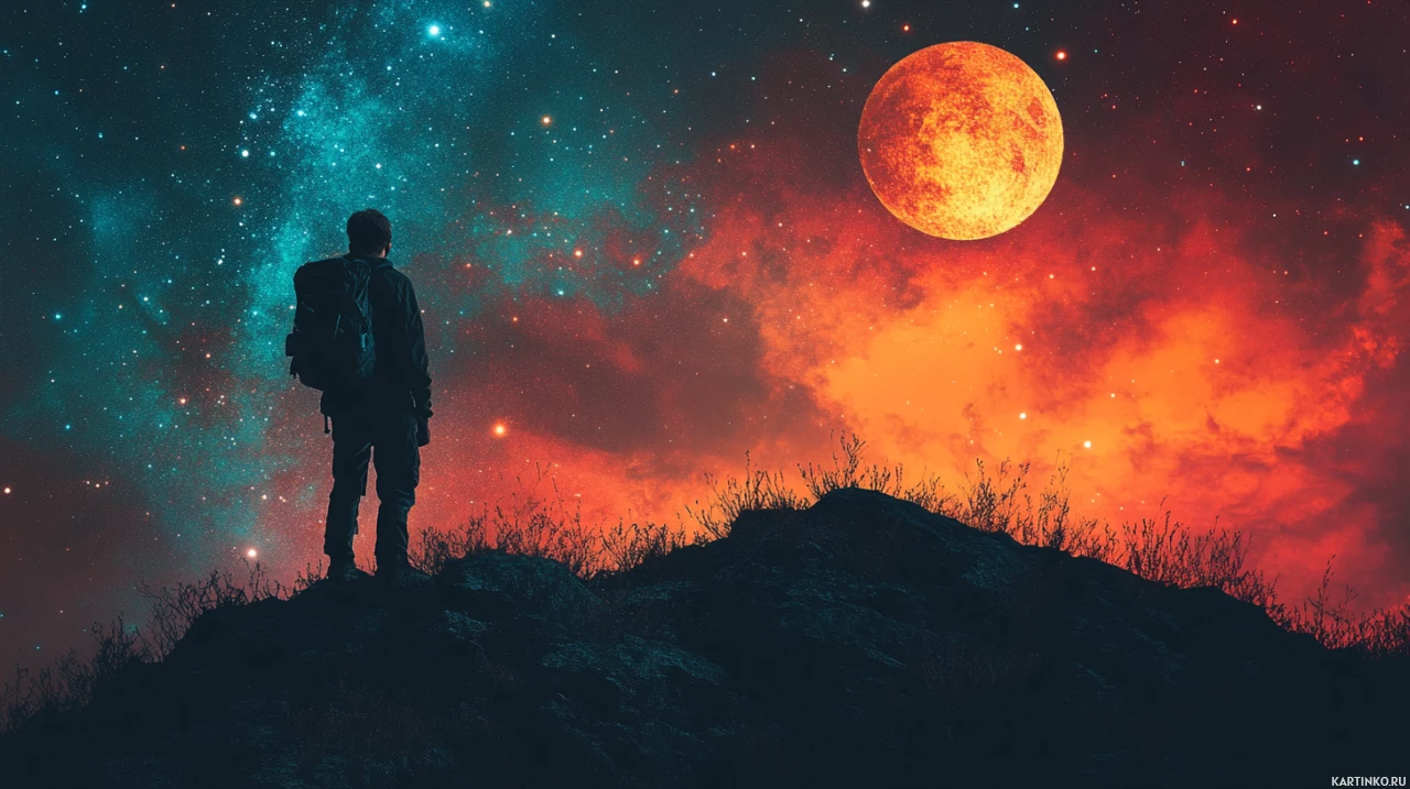 Силуэт исследователя на фоне космического пейзажа Больше картинок по схожим темам
