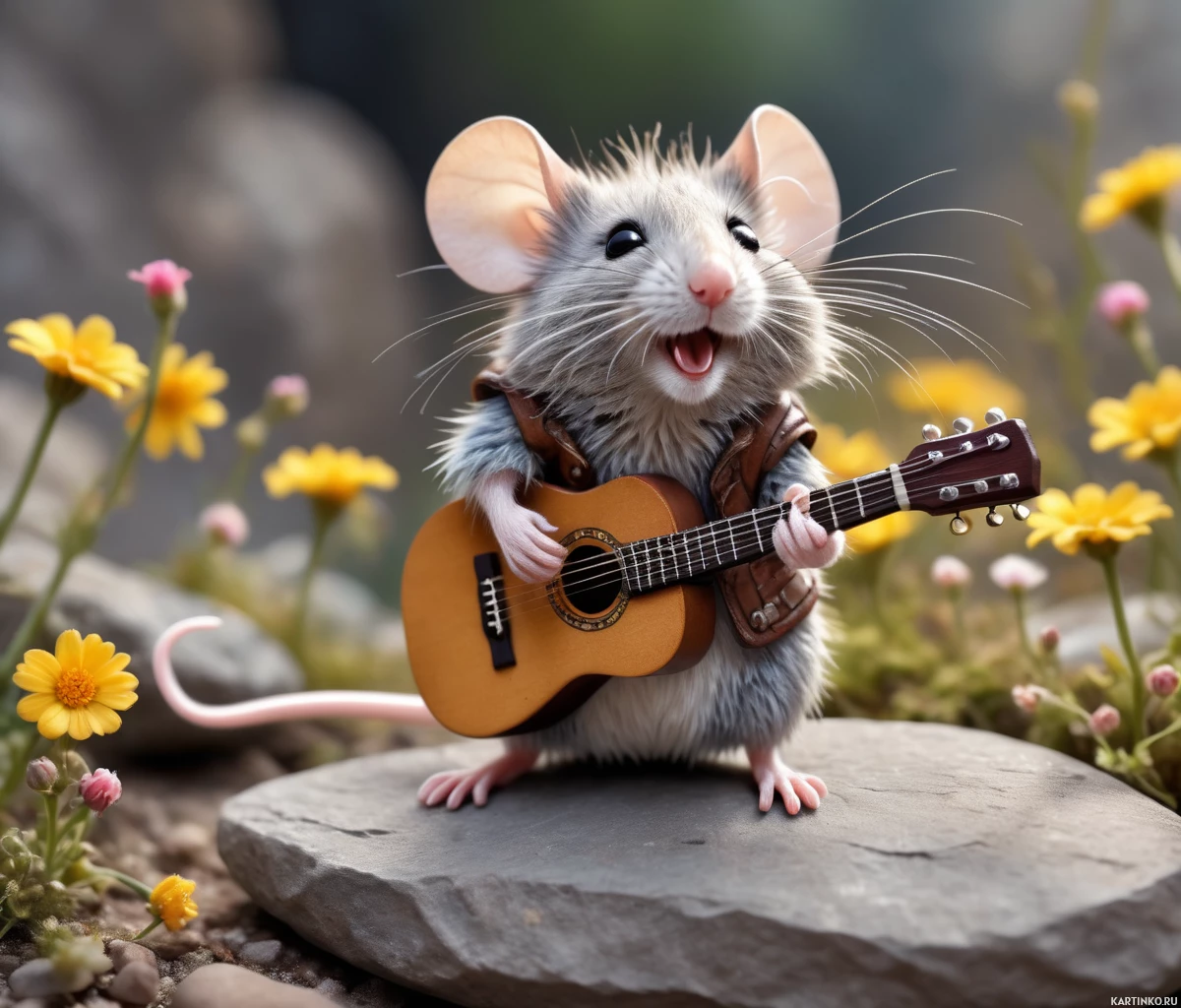 Игривая сцена с мышонком, играющим на гитаре Больше картинок по схожим темам