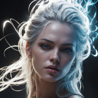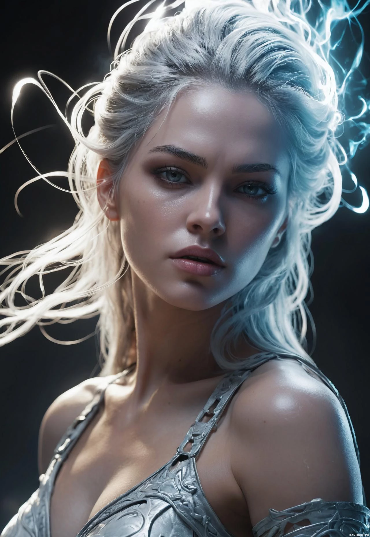 white hair, exuding an ethereal and powerful presence. She is wearing