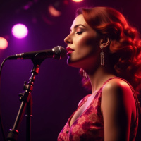 Рыжеволосая певица поет в микрофон Больше картинок по схожим темам