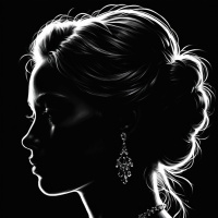 На картинке изображен профиль женщины. На ней вечернее платье с драпировкой, что указывает на торжественное мероприятие, например, свадьбу или гала-вечер. Волосы убраны в высокую прическу, возможно, пучок или шиньон. Выражение лица задумчивое, подбородок слегка опущен, взгляд направлен в сторону, от фотокамеры. Свет в фотографии драматичный, создаёт тени на лице и шее, подчеркивая текстуру кожи и ткани платья. Поза и наряд передают ощущение элегантности и изысканности.