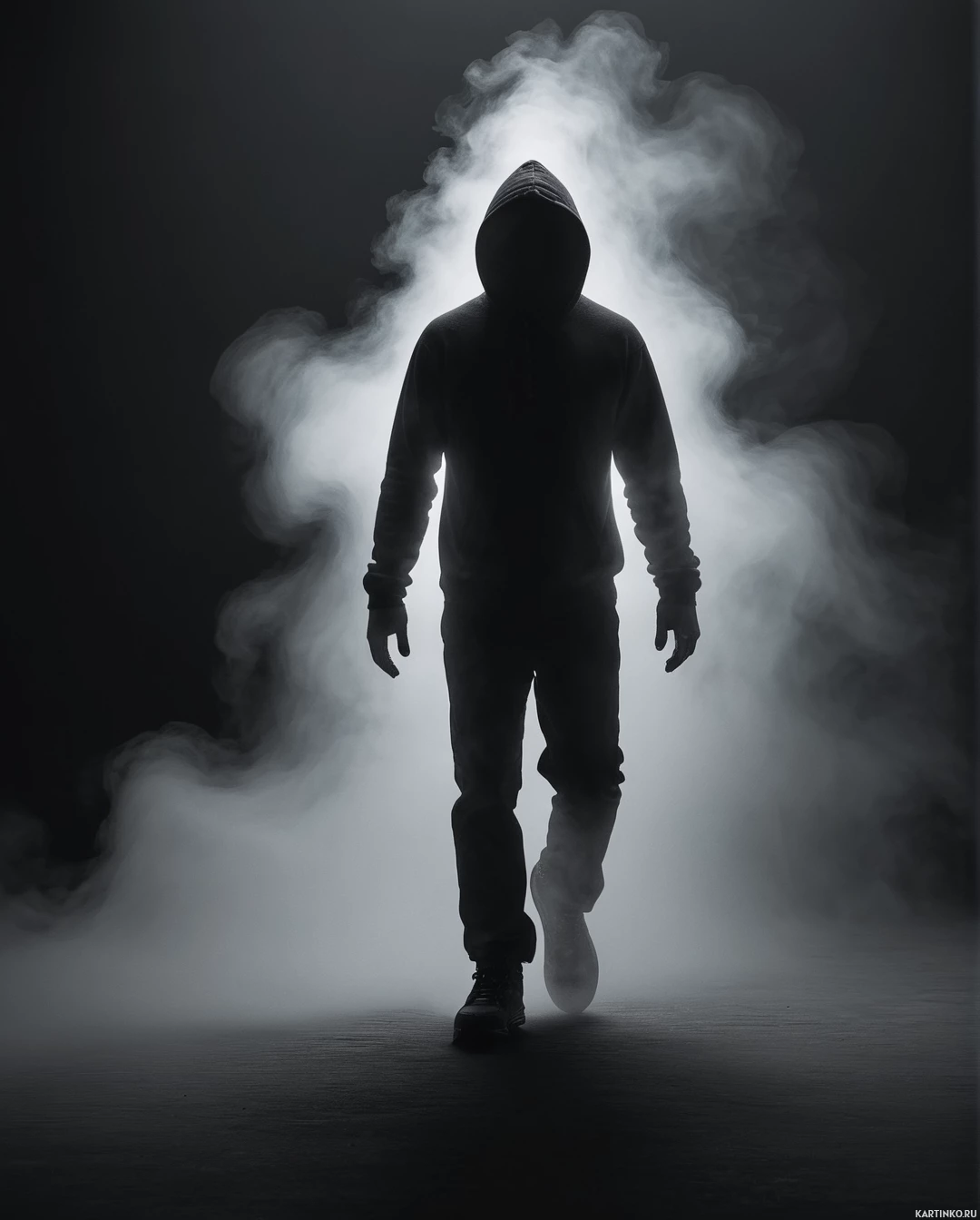 силуэты | Красивые авы с силуэтом | Silhouettes | Таинственный мужчина в капюшоне, прогуливающийся в тумане