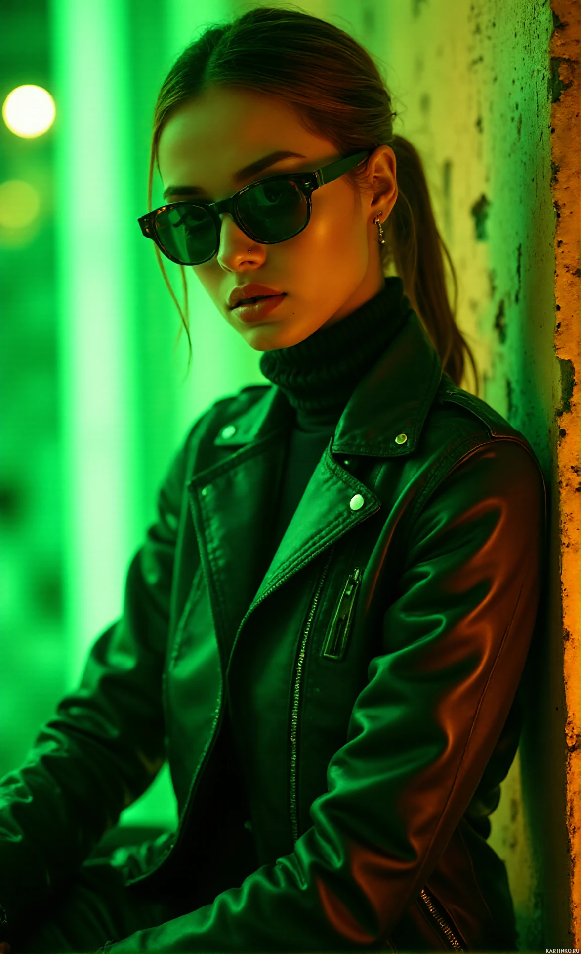 a clear view of their profile and side profile. The photograph has a modern and perhaps edgy aesthetic, indicated by the choice of clothing and accessories worn by the subject.
