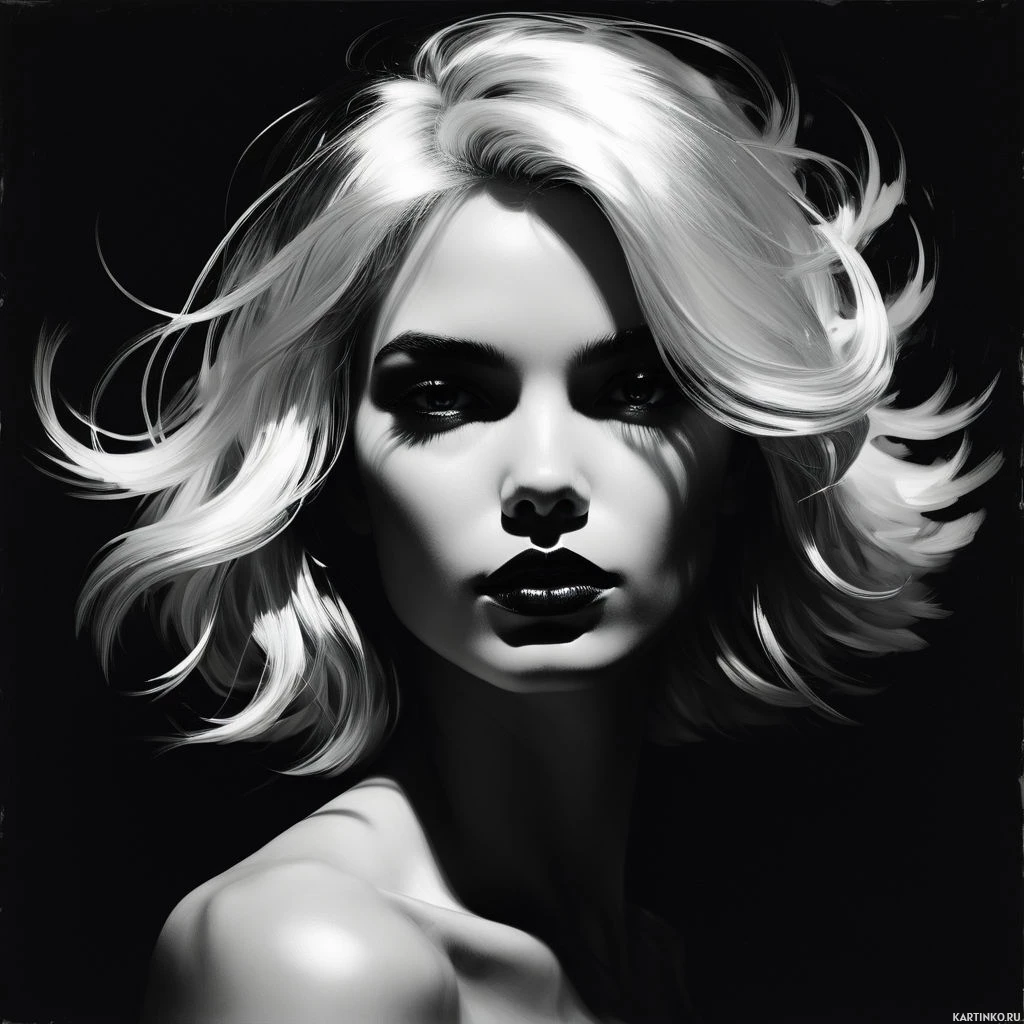 white hair and fair skin, styled in an artistic manner with a side parting. Her makeup is done subtly, enhancing her features without overpowering them. She has