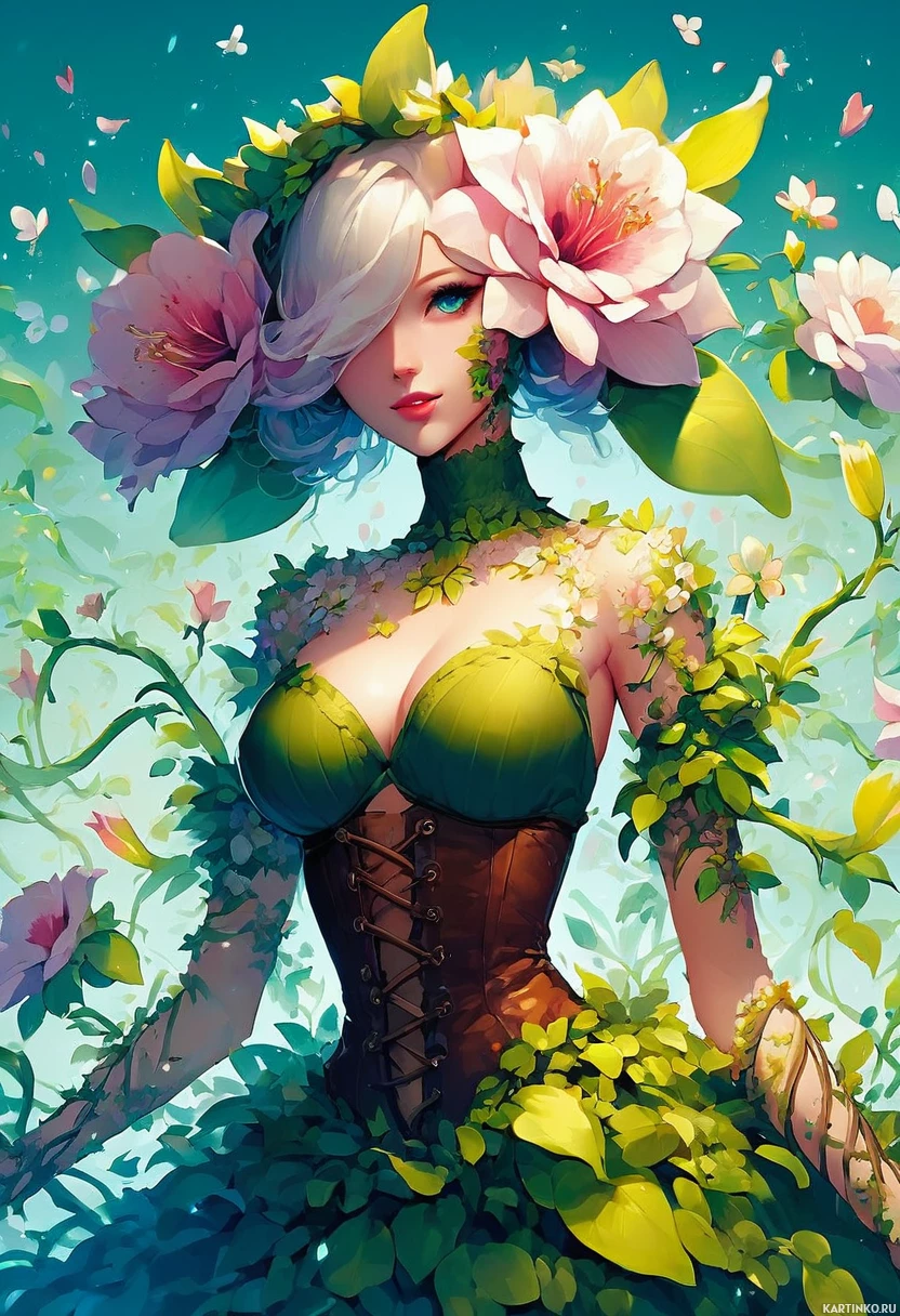 белые волосы | White hair | Дизайн персонажа с цветами и зеленью