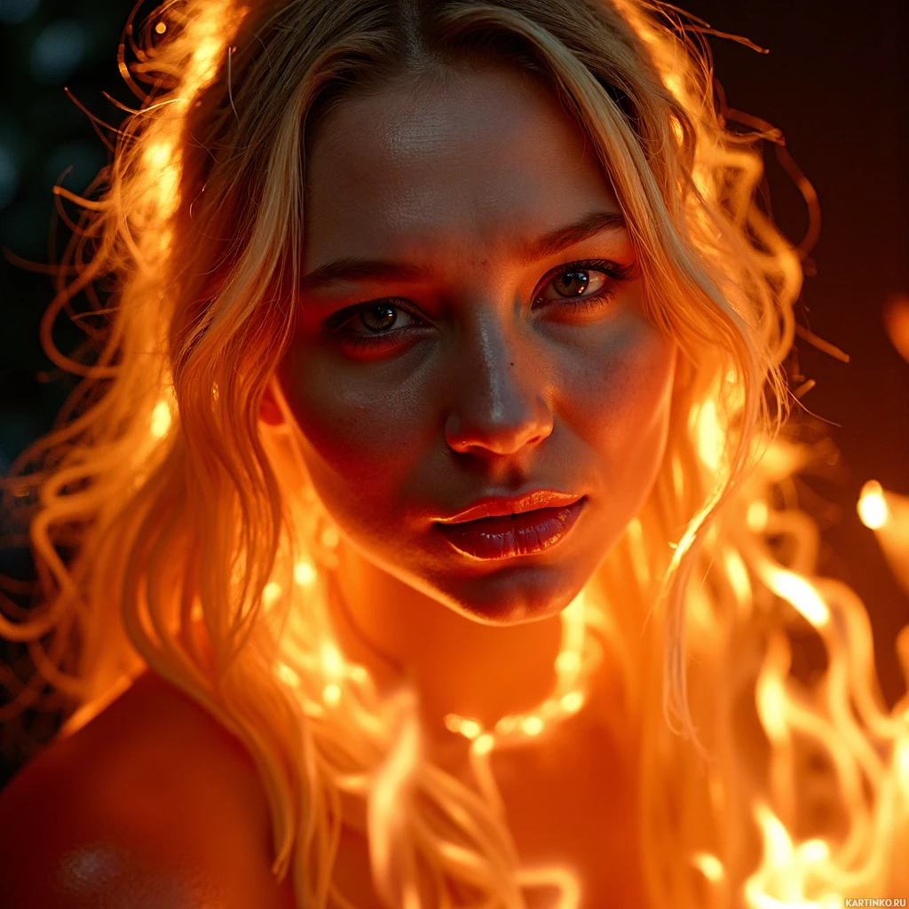 Женщина в пламени с золотистыми волосами Картинки с такими же тегами
