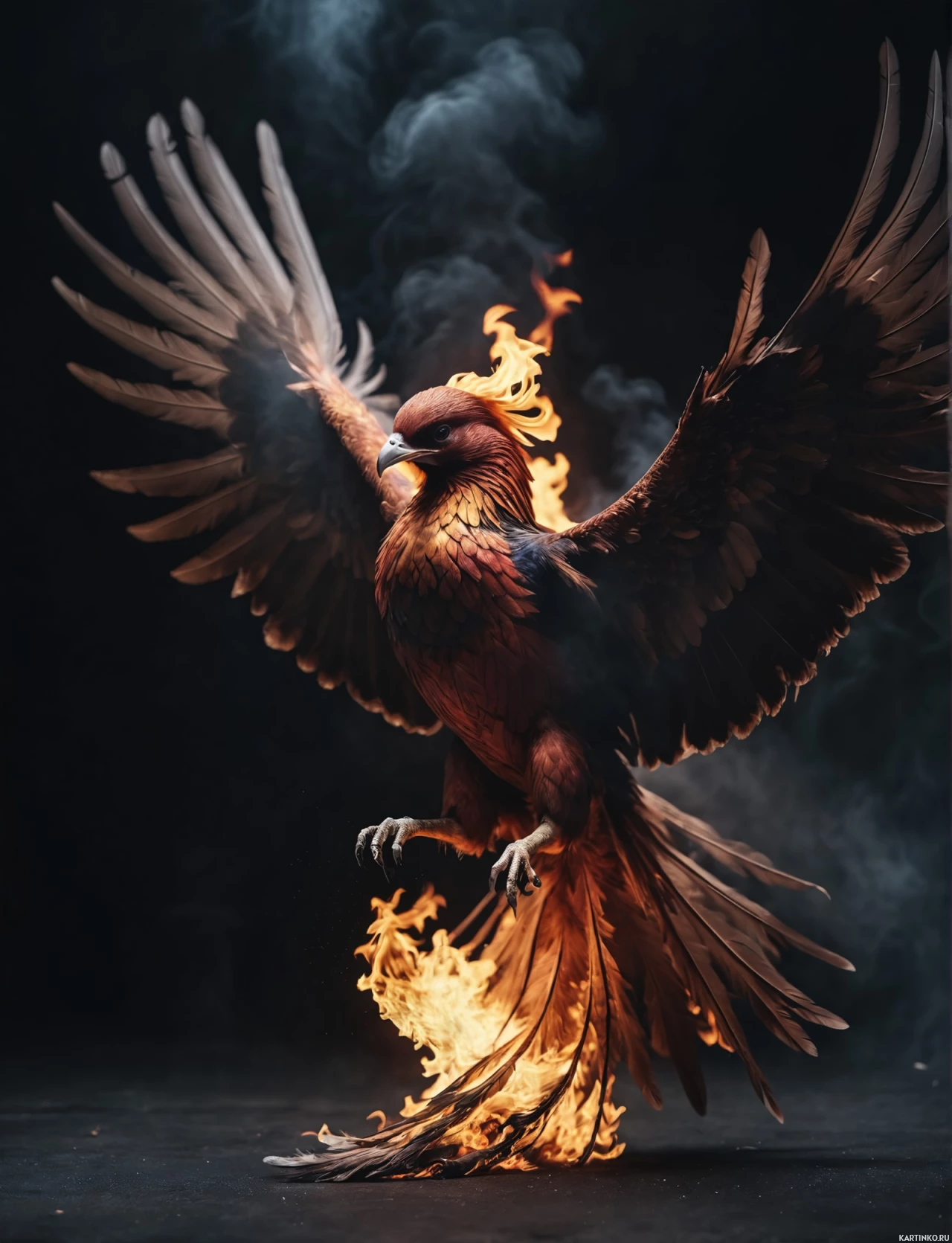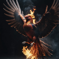 fantasy contexts. The bird appears to be on fire, symbolizing a spirit that cannot be extinguished by the challenges it faces.