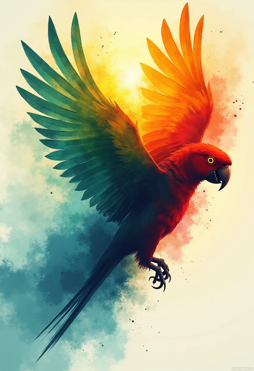 a gradient effect that transitions from warm to cool colors, creating a dynamic and artistic backdrop for the bird. The style of the image suggests it may have been designed digitally and could be used for various purposes such as wallpapers, logos, or other