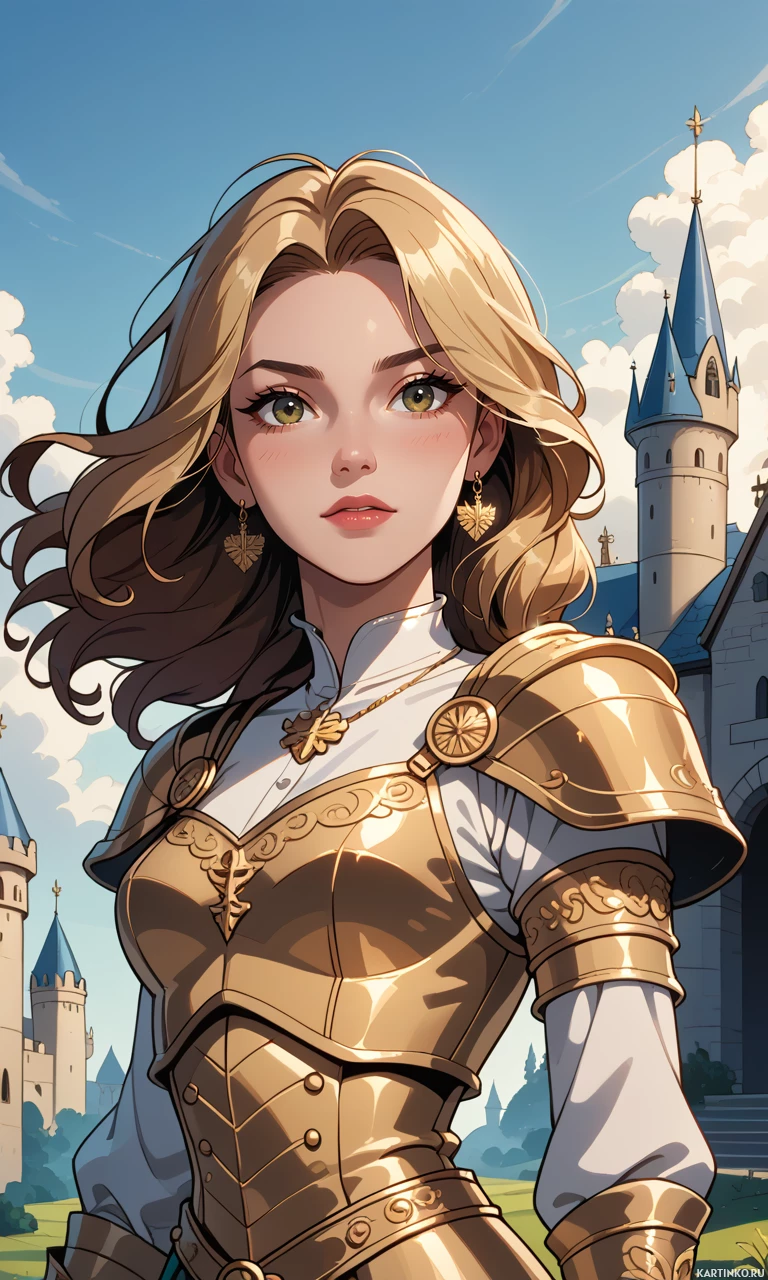 a fantasy kingdom or era. The armor includes gold and silver elements, indicating