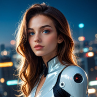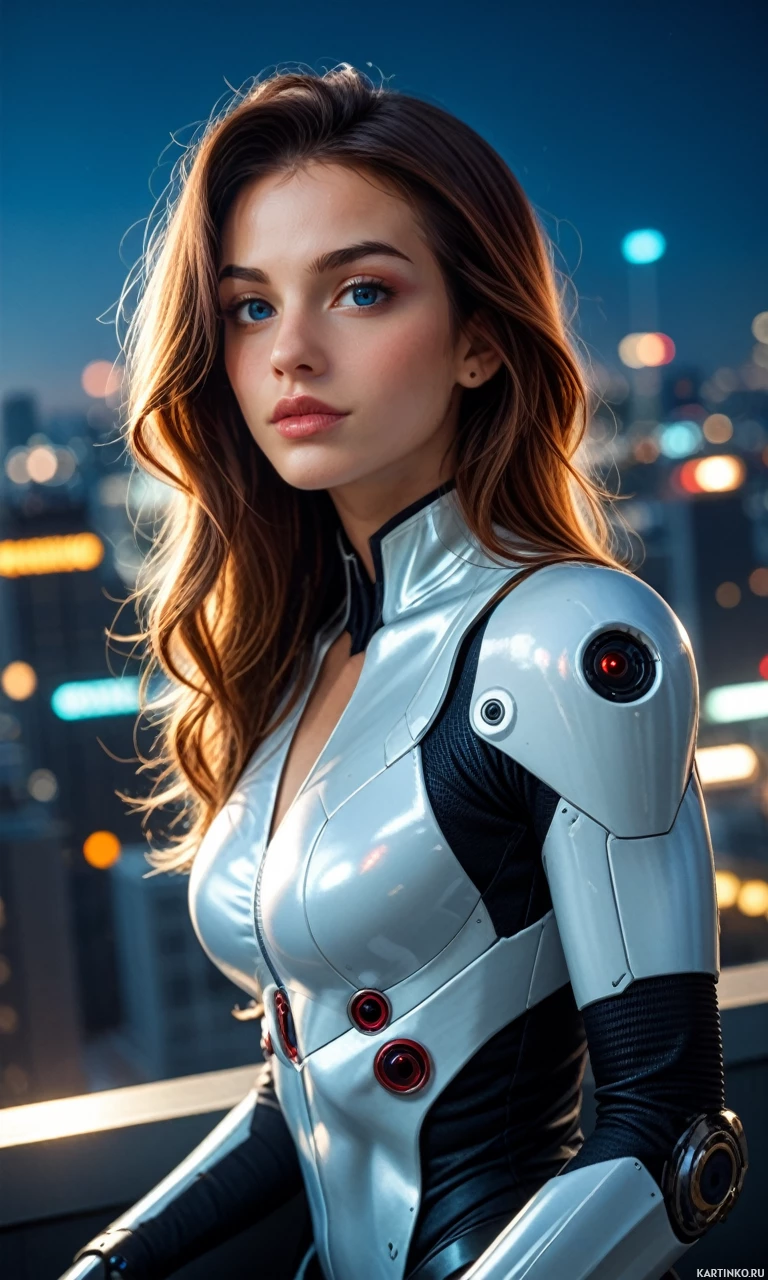 a science fiction context, possibly depicting a character in a futuristic scenario where technology and human augmentation are advanced.