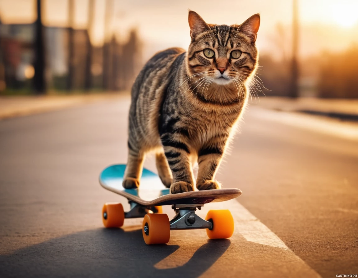 скейтбординг | Скачать аватары с скейтбордингом | Skateboarding | Смелый кот катается на скейтборде