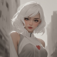 urban setting. The character's design and the setting suggest she might be part of a story or game with a futuristic or science fiction theme.