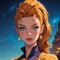 an outdoor environment, possibly during nighttime or dusk, as there are stars visible in the background. The overall style of the image is reminiscent of