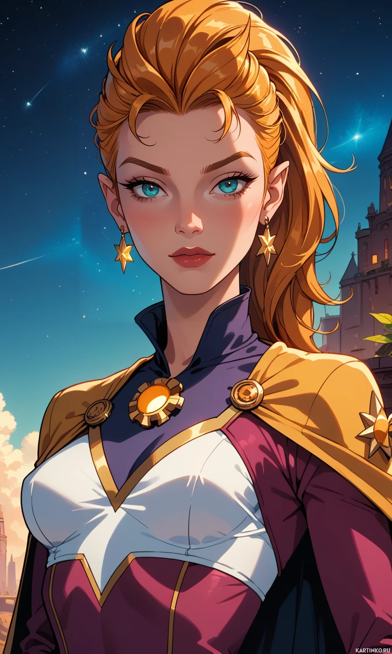 fantasy art, with the character depicted in a heroic pose that could imply she is a protagonist or significant figure within a narrative.